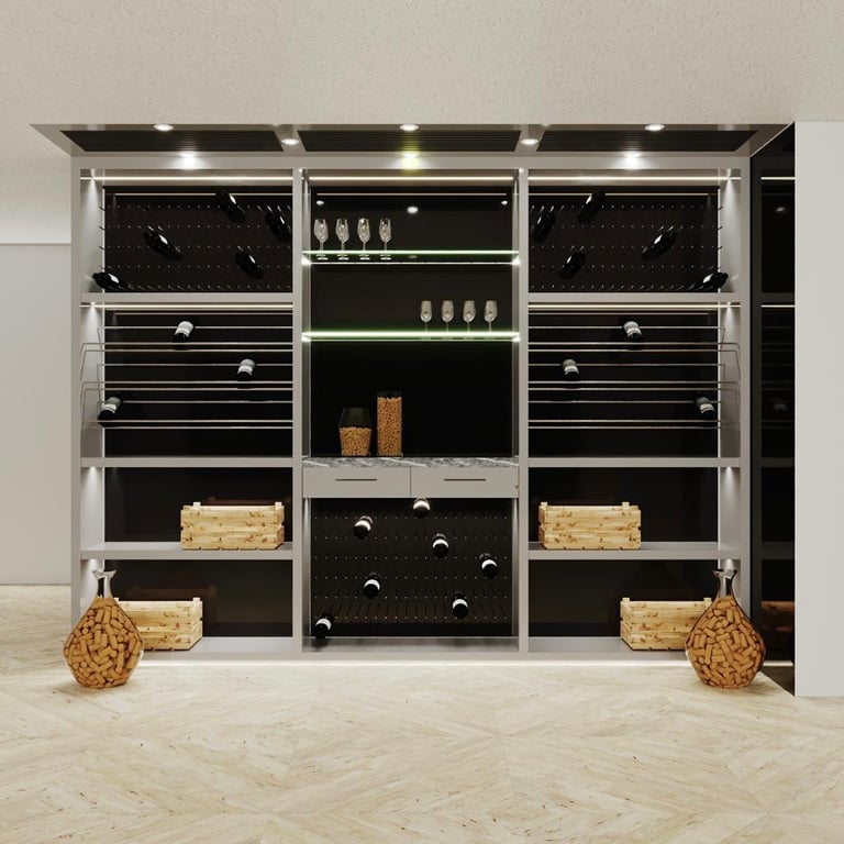 Cada garrafa descansa em equilíbrio, pronta para transformar cada brinde em um momento inesquecível.